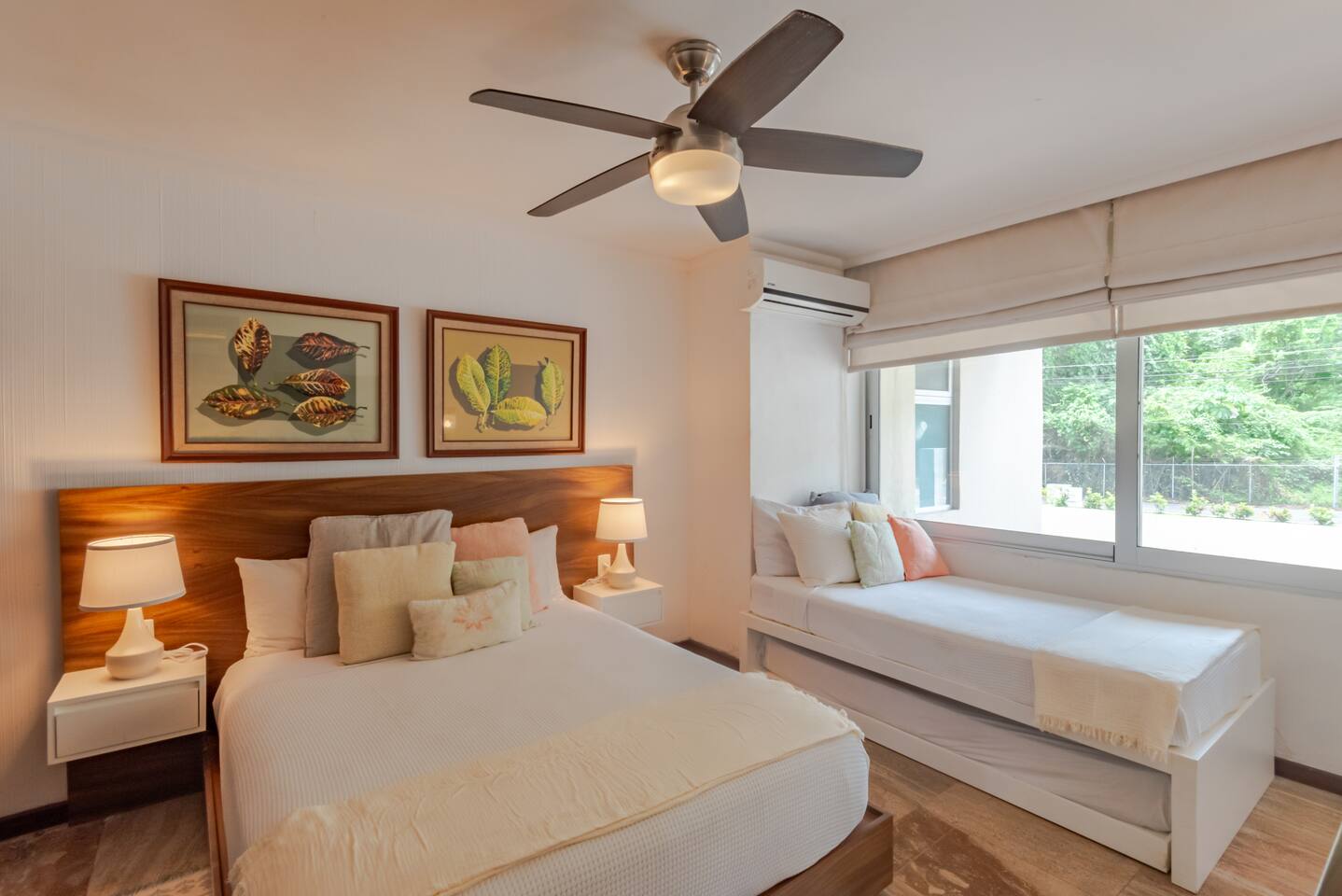 Beachfront condo nestled on a pristine private beach. Revel in breathtaking jungle views from the balcony with hotel-like services. An on-site restaurant with affordable delights, room service and daily maid service. Just minutes away from Zona Romántica for culinary adventures and vibrant nightlife. Accommodating up to 6 guests, this exclusive retreat promises an unforgettable escape where the beauty of the private beach and stunning jungle panoramas take center stage.